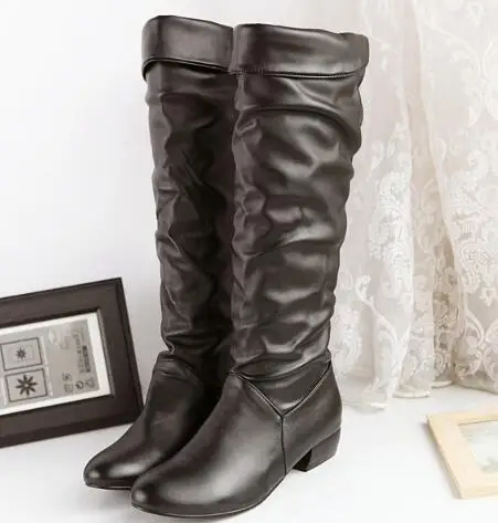 TOP New casual low heel high boots round head thick with boots non-slip deodorant warm large size winte